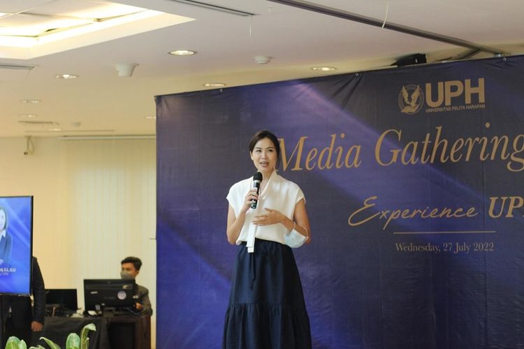 Executive Director YPPH Stephanie Riady memberi sambutan dalam media gathering ?Experience UPH? di kampus UPH, Karawaci, Kota Tangerang, Banten, Rabu (27/7/2022)