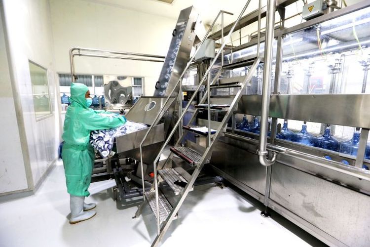 Jalur produksi air mineral AQUA galon guna ulang