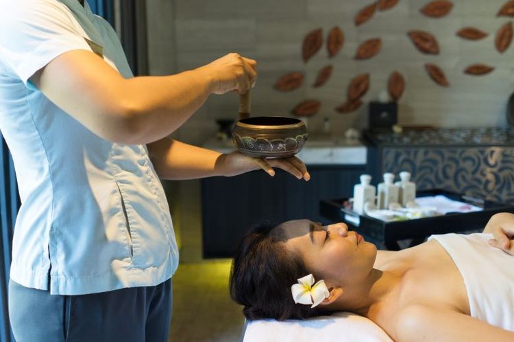 Meditasi sound-bath juga menjadi salah satu produk wellness yang ditawarkan Eat.Pray.Spa di Heavenly Spa dari Westin Resort Nusa Dua.