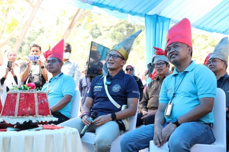 Menparekraf Sandiaga Salahuddin Uno saat kunjungan ke spot wisata permandian Erbol di Kelurahan Campaga, Kecamatan Tompobulu, Kabupaten Bantaeng, Rabu (7/9/2022).