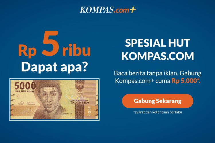 Kompas.com menghadirkan harga promo spesial ulang tahun sebesar Rp 5.000 per bulan untuk tiga bulan pertama langganan Kompas.com+.