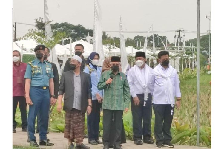 Wapres Maruf Amin meninjau lokasi Agroeduwisata Guler Farm Nature, Kabupaten Tangerang, Banten.