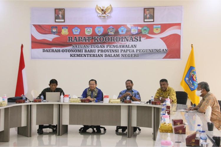Kementerian Dalam Negeri (Kemendagri) melalui Tim Kelompok Kerja (Pokja) III Satuan Tugas (Satgas) Pengawalan Daerah Otonom Baru (DOB) Papua Pegunungan menggelar rapat koordinasi (rakor) lanjutan di Gedung Aithousa Betlehem, Wamena, Jayawijaya, Rabu (5/10/2022) (Dok Kemendagri)
