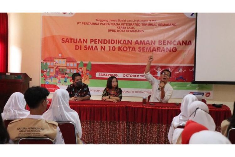 PT Pertamina (Persero) bersama Badan Penanggulangan Bencana Daerah (BPBD) dan Forum Pengurangan Risiko Bencana (FPRB) Kota Semarang, Jawa Tengah (Jateng), membentuk Satuan Pendidikan Aman Bencana (SPAB) sebagai upaya tanggap bencana lingkungan di sekolah.(Dok. Pertamina)
