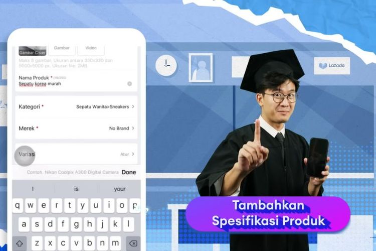 Kamu bisa mengisi detail keterangan produk, mulai dari kategori, merek, variasi, harga, hingga kuantitas.