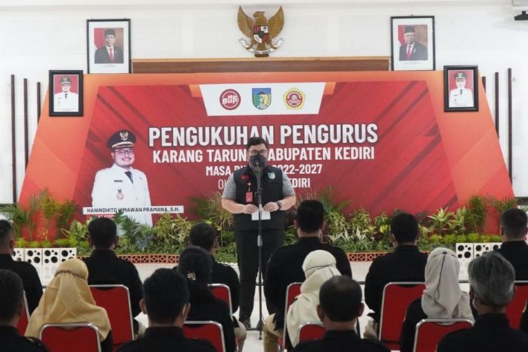 Mas Dhito saat memberikan arahan kepada 42 pengurus baru Karang Taruna Kabupaten Kediri masa bakti 2022-2027 di Ruang Joyoboyo Kantor Pemkab Kediri.