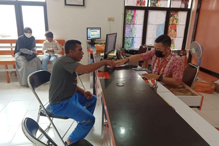 Pekerja mencairkan dana BSU di Kantor Pos Cabang Pusat Cakranegara, Mataram, Nusa Tenggara Barat (NTB)