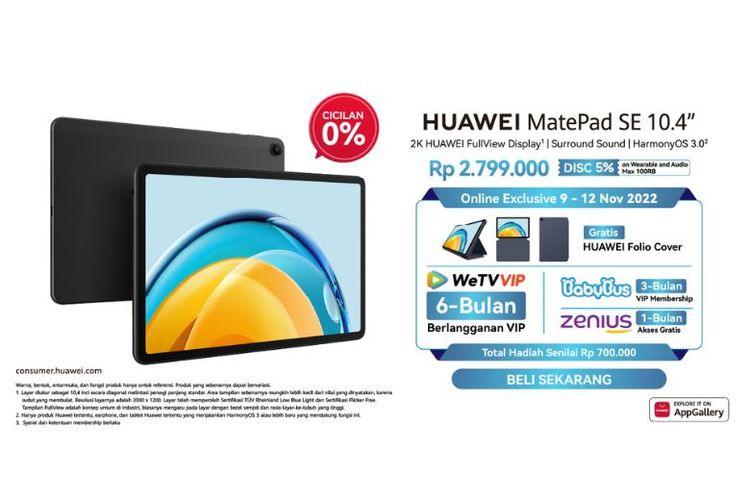HUAWEI MatePad SE sudah bisa dipesan secara online di berbagai mitra penjualan mulai Rabu (9/11/2022).