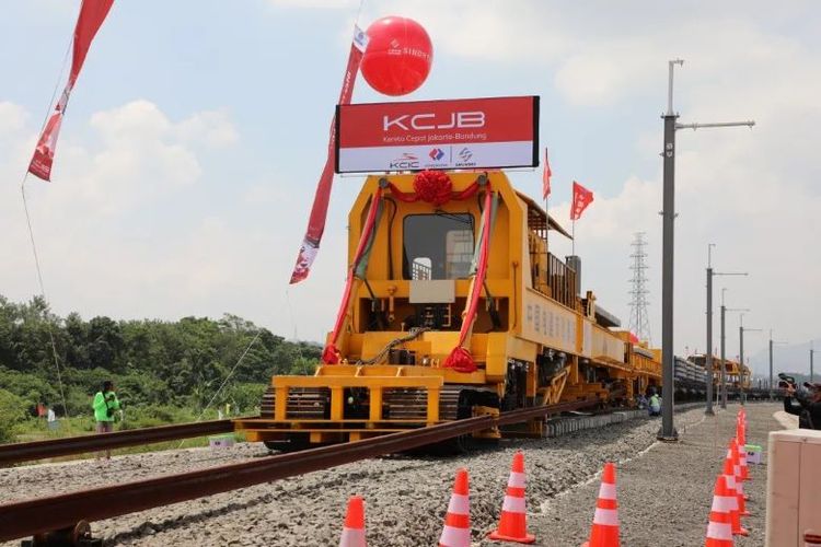 Upacara peletakan rel Kereta Cepat Jakarta-Bandung digelar pada tanggal 20 April 2022.