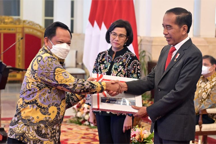 Menteri Dalam Negeri (Mendagri) Muhammad Tito Karnavian menerima langsung Daftar Isian Pelaksanaan Anggaran (DIPA) Kementerian Dalam Negeri (Kemendagri) Tahun Anggaran (TA) 2023 dari Presiden Joko Widodo (Jokowi) di Istana Negara, Jakarta, Kamis (1/12/2022) (Dok. Kemendagri)
