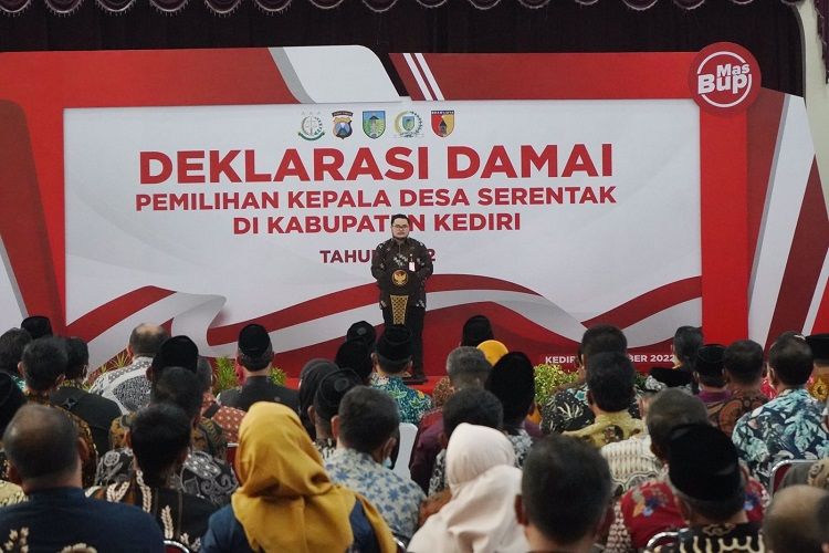 Bupati Kediri Hanindhito Himawan Pramana pada Deklarasi Damai di Gedung Bagwanta Bhari, Kamis (1/12/2022).