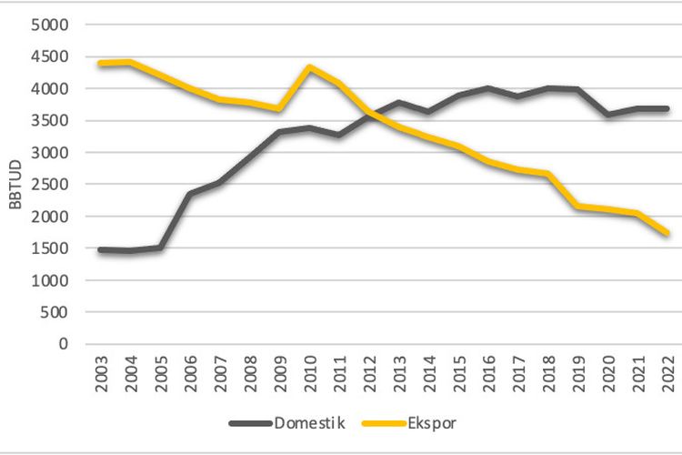 Perbandingan Pasokan Ekspor dan Domestik (in BBTUD) (s.d. September 2022).