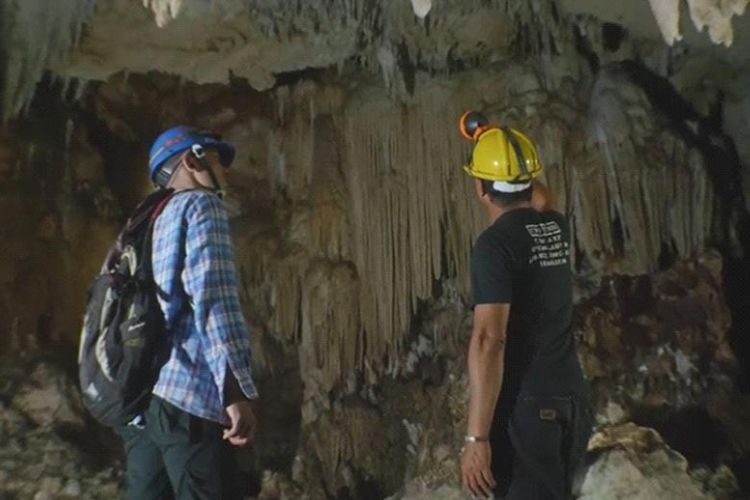Stalagmit dan stalaktit di Gua Laumehe.