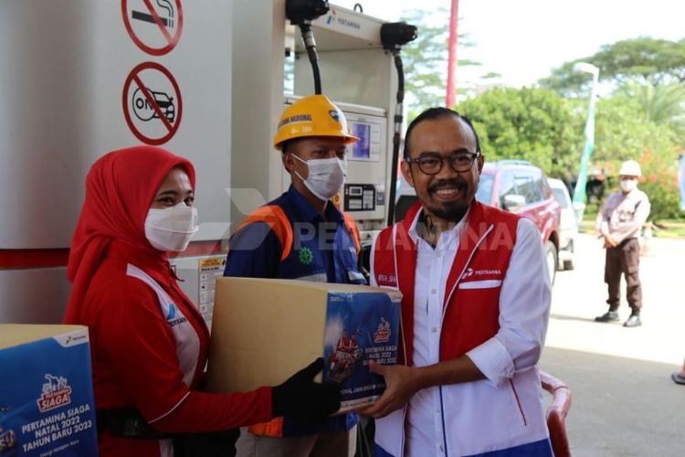 Direktur Pemasaran Pusat dan Niaga Pertamina Riva Siahaan meninjau kesiapan Natal 2022 dan Tahun Baru 2023