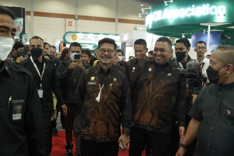 Mentan SYL (tengah) bersama Dirjen Perkebunan Kementan Andi Nur Alam Syah dalam pameran Bunex di JCC.