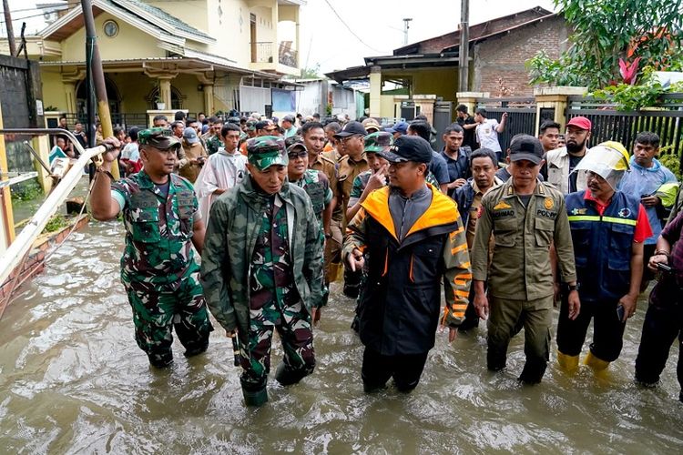 Gubernur Sulawesi Selatan Andi Sudirman Sulaiman saat meninjau penanganan banjir yang melanda kawasan Kota Makassar dan sekitarnya.