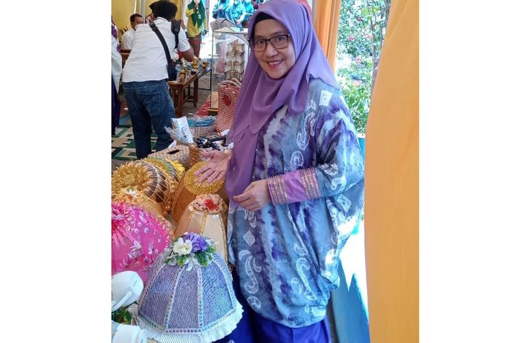 Lies Herawti (54) berfoto dengan produk bosara dan tudung saji yang dibuatnya.