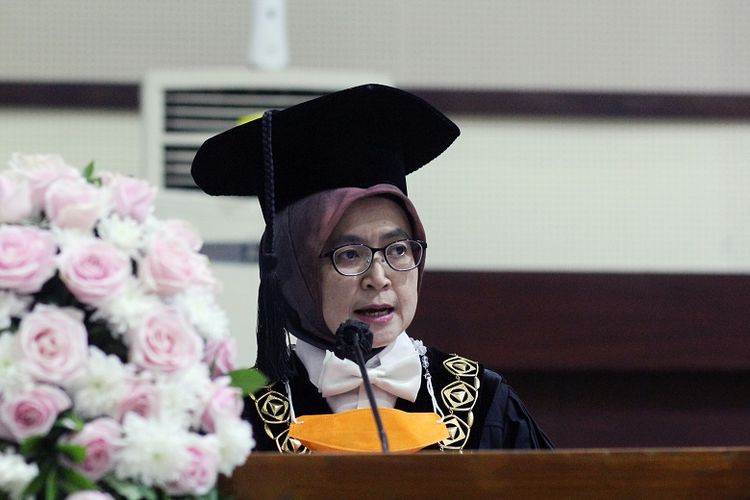 Rektor Itenas Meilinda Nurbanasari dalam acara wisuda untuk Periode Semester Ganjil Tahun Akademik 2022/2023 digelar di Gedung Serba Guna (GSG) Bale Dayang Sumbi Itenas, Sabtu (4/3/2023).