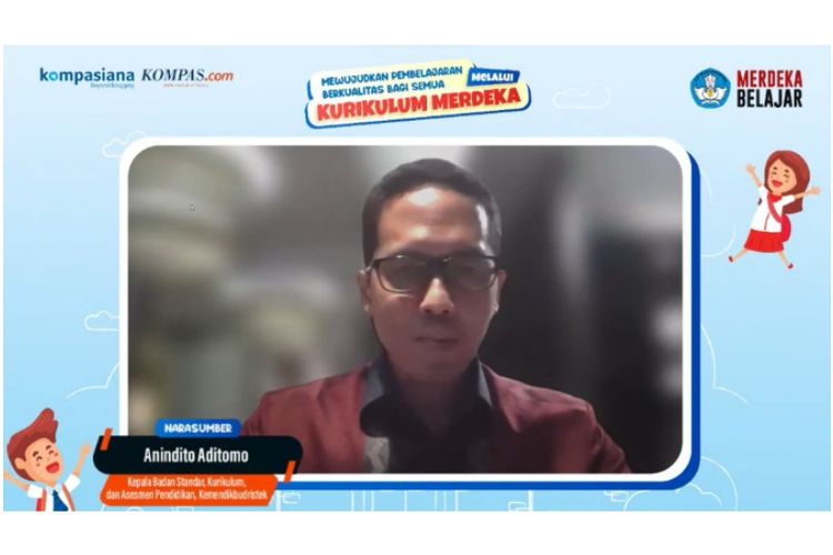 Asesmen Pendidikan Kemendikbudristek Anindito Aditomo pada webinar ?Mewujudkan Pembelajaran Berkualitas bagi Semua Melalui Kurikulum Merdeka?.
