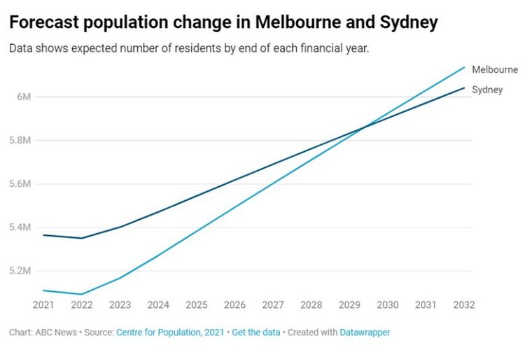Melbourne diperkirakan akan menggeser posisi Sydney sebagai kota dengan populasi terbanyak pada 2029-2030.