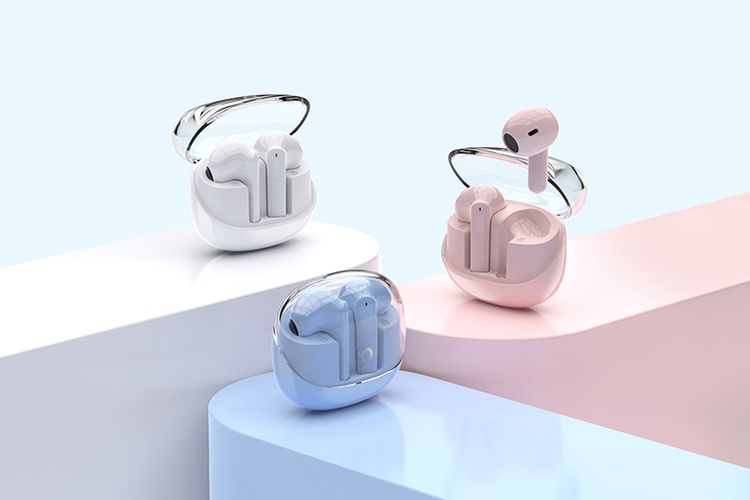 Olike TWS T103 hadir dengan pilihan warna putih, pink, dan biru muda.