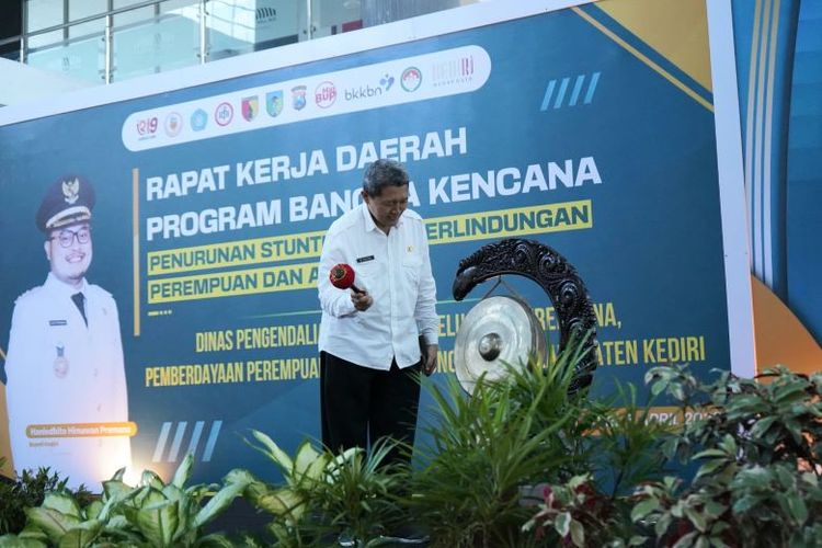 Rapat Kerja Daerah Program Bangga Kencana mendatangkan narasumber dari Badan Kependudukan dan Keluarga Berencana Nasional (BKKBN) Provinsi Jawa Timur, Polres Kediri Kota dan Kepala Dinas Pengendalian Penduduk, Keluarga Berencana, Pemberdayaan Perempuan dan Perlindungan Anak (DP2KBP3A) Kabupaten Kediri. (Dok Pemkab Kediri)