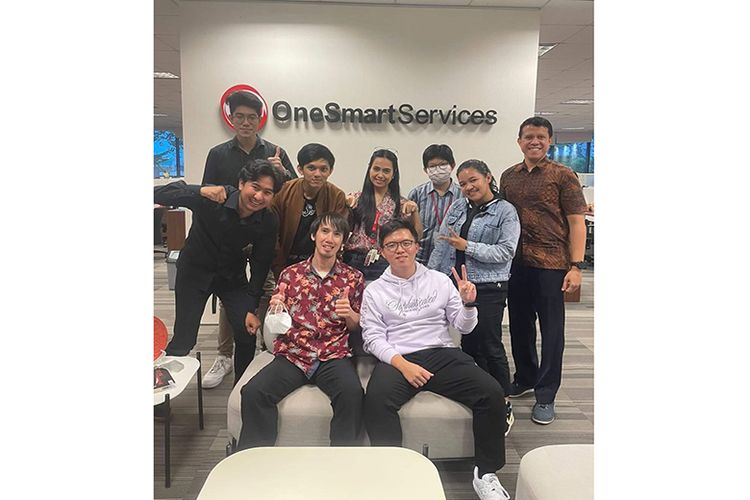 Jovan (pakai jaket putih) dengan teman-teman nya saat magang di PT. Sinarmasland