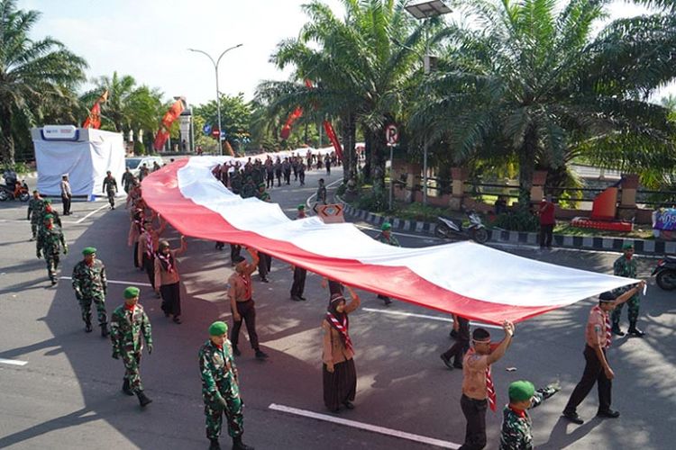 Bendera Merah Putih dibawa keliling pada Kirab Kebangsaan Pemkab Kediri.