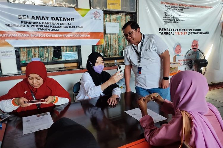 Penyerahan bansos sembako dan PKH dari Kemensos melalui Pos Indonesia.