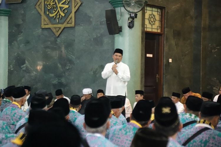 Wali Kota Tangerang Arief R Wismansyah saat acara pelepasan jemaah haji, di Masjid Raya Al Azhom, Kota Tangerang, Banten.