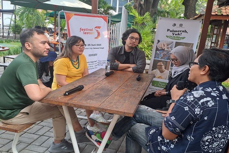 Sejumlah pihak bergotong royong mewujudkan kekuatan ekonomi daerah berkelanjutan dengan menciptakan ekosistem UMKM lestari. Salah satunya, Koalisi Ekonomi Membumi, Asosiasi Pengusaha Indonesia (Apindo), Java Kirana, dan Lingkar Temu Kabupaten Lestari (LTKL). (Dok. KOMPAS.com/Yakob Arfin)