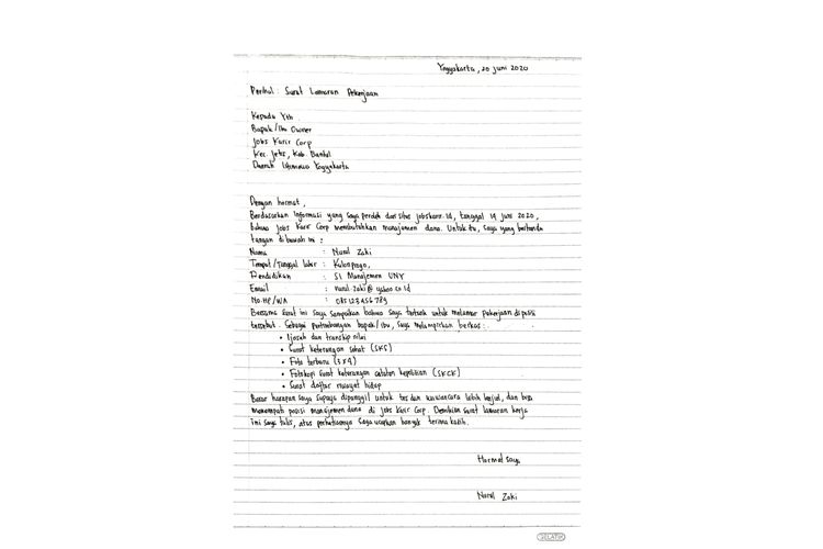 Image contoh daftar riwayat hidup tulis tangan lulusan SMA/SMK.
