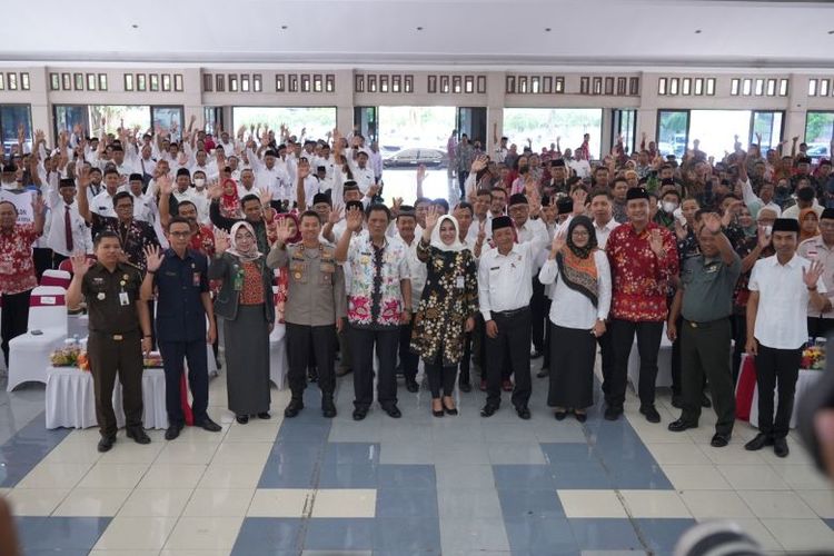 Para cakades yang maju dalam kontestasi politik Pilkades gelombang I Kabupten Klaten turut menandatangani komitmen damai, Selasa (27/6/2023).