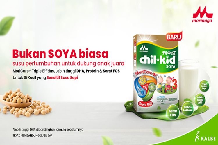 Morinaga Chil Kid Soya hadir dengan MoriCare+ Triple Bifidus, tinggi protein soya, serta serat pangan FOS.