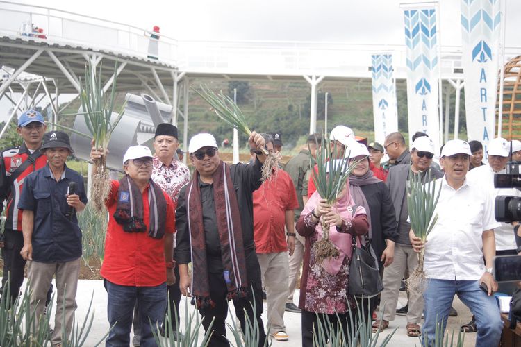 Panen daun bawang di Agro Eduwisata Arthala Cianjur oleh Bupati dan Sesditjen PSP Kementan.