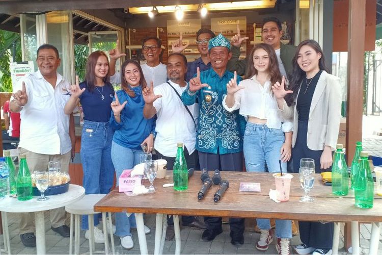Bupati Tanah Laut (Tala) HM Sukamta (menggunakan batik biru) bersama sutradara dan pemain film TALA: When Love Calls From The Bottom of Borneo.