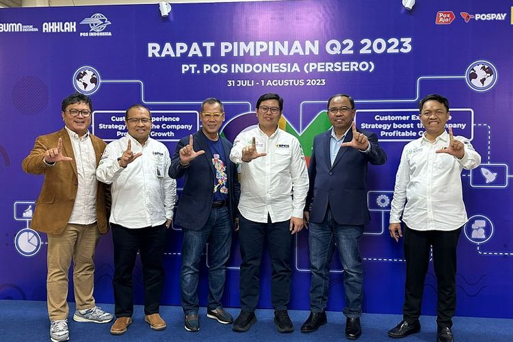 Perwakilan dari Pos Indonesia dan Bank Muamalat berfoto bersama.