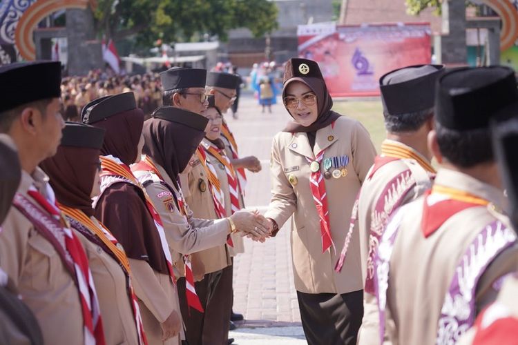 Bupati Klaten Sri Mulyani mengatakan, gerakan Pramuka sebagai organisasi pendidikan kepanduan Praja Muda Karana diharapkan dapat terus berkembang serta turut membantu masyarakat. Utamanya, dalam pembentukan karakter generasi muda. (Dok. Pemkab Klaten)