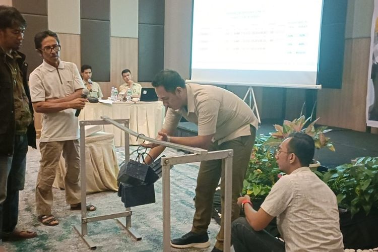 Pengujian pipa GI Spindo di acara customer gathering yang digelar di Hotel Santika Bukittinggi, Sumatera Barat, Kamis (24/8/2023).