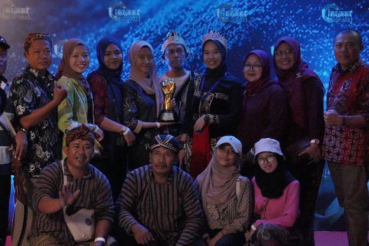 Ketua Pokdarwis Sidowarno, Suraji, menerima piala penghargaan dari Nur Asia Uno DWP Kemenparekraf RI.