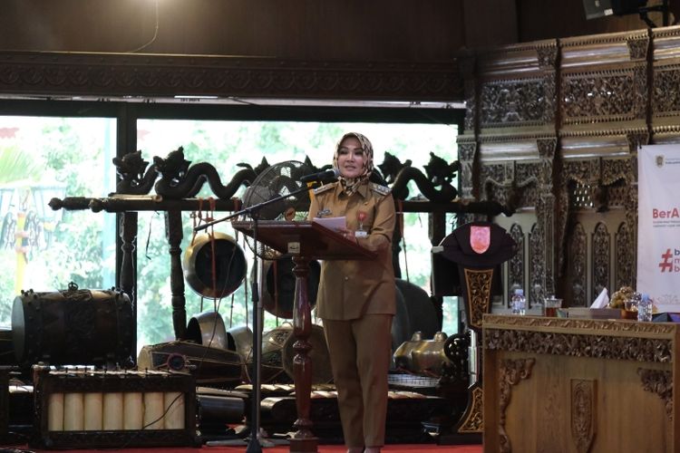 Bupati Klaten Sri Mulyani saat memimpin Rakor dan Evaluasi Upaya Percepatan Penurunan Stunting di Pendapa Ageng Kabupaten Klaten, Jawa Tengah, Senin (11/9/2023).