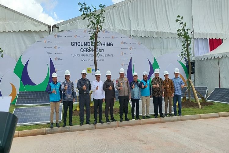 Penanaman pohon yang dilakukan secara simbolis pada rangkaian acara Groundbreaking Ceremony di Kawasan Tunas Prima Industrial Estate, Kabil, Batam, Selasa (19/9/2023)