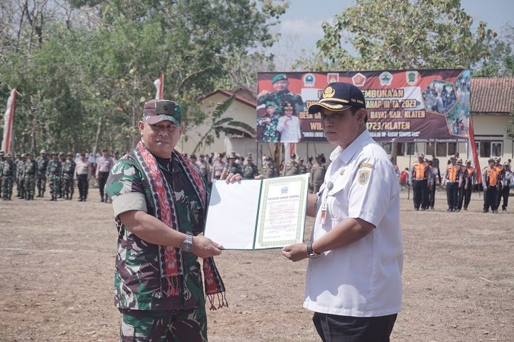 TMMD merupakan program bakti masyarakat besutan Tentara Nasional Indonesia (TNI) yang melibatkan seluruh komponen masyarakat serta pemerintah daerah (pemda). Terbaru, program tersebut digelar di Desa Gunung Gajah, Kecamatan Bayat, Kabupaten Klaten, Jateng mulai Rabu (20/9/2023) hingga Kamis (19/9/2023). (Dok. Pemkab Klaten)