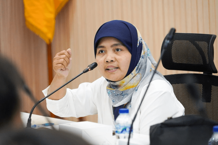 Tenaga Ahli Strategi Nasional Pencegahan Korupsi (Stranas PK) KPK Juhanah berbicara di Ruang Rapat Wali Kota Cilegon, Senin (25/9/2023)
