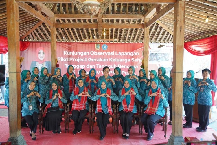 Foto bersama TP PKK Pusat dalam kunjungan observasi lapangan pilot project Gerakan Keluarga Sehat Tanggap dan Tangguh Bencana (Gagah Bencana), Kamis (5/10/2023) (Dok. Pemkab Klaten)