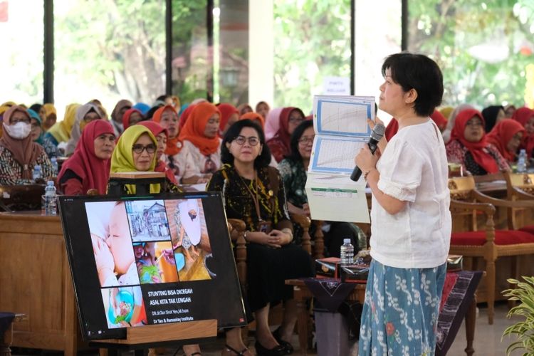 Dr dr Tan Shot Yen, MHum, saat mengisi materi tentang stunting dalam seminar bertajuk ?Peran Kader dan Tenaga Kesehatan dalam Penurunan Stunting? yang digelar di Pendapa Ageng Kabupaten Klaten, Jawa Tengah, Kamis (12/10/2023).
