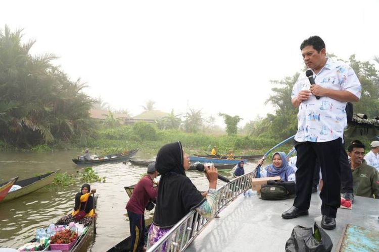 Kunjungan Direktur Utama Badan Penyelenggara Jaminan Sosial (BPJS) Kesehatan, Ghufron Mukti, di Pasar Apung di Sungai Martapura, Rabu (1/11/2023), mendapat antusias pengunjung.