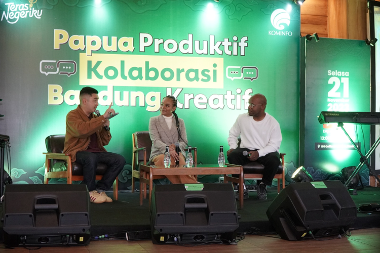 Forum diskusi publik bertajuk ''Papua Produktif Kolaborasi Bandung Kreatif'' di 150 Coffee and Garden, Bandung, Jawa Barat, Selasa (21/11/2023).
