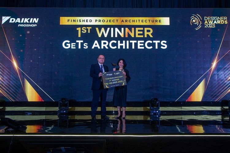 GeTs Architect menjadi pemenang pertama dalam kategori Finished Project untuk kelompok karya arsitektur dalam kompetisi tahunan 'DAIKIN Proshop Designer Award 2023' di Hotel Westin, Jakarta, Jumat (24/11/2023).