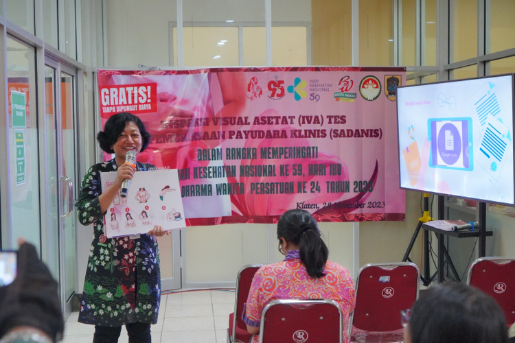 Dharma Wanita Persatuan (DWP) Kabupaten Klaten mengadakan pemeriksaan Inspeksi Visual Asetat (IVA) dan Pemeriksaan Payudara Klinis (Sadanis) gratis di Rumah Sakit Umum Daerah (RSUD) Bagas Waras Klaten, Jawa Tengah, Selasa (28/11/2023) (Dok. Pemkab Klaten)